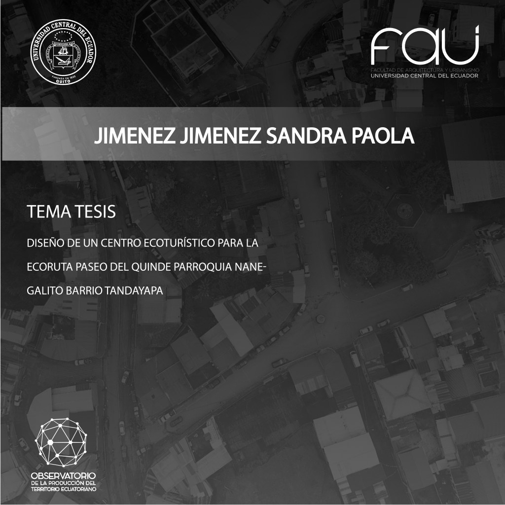 El presente Proyecto se encuentra ubicado en la parroquia de Nanegalito, en el barrio de Tandayapa, el cual evidencia problemas de abandono y desconexión, además de una degradación de equipamientos públicos consecuencia del abandono de los pobladores del barrio, por lo cual se plantea un equipamiento que apoye el turismo tanto en el barrio como en la Ecoruta que lo atraviesa, con infraestructura adecuada para el desarrollo de actividades tanto para turistas como para los pobladores de Tandayapa integrando las actividades de la Ecoruta Paseo del Quinde con el poblado.