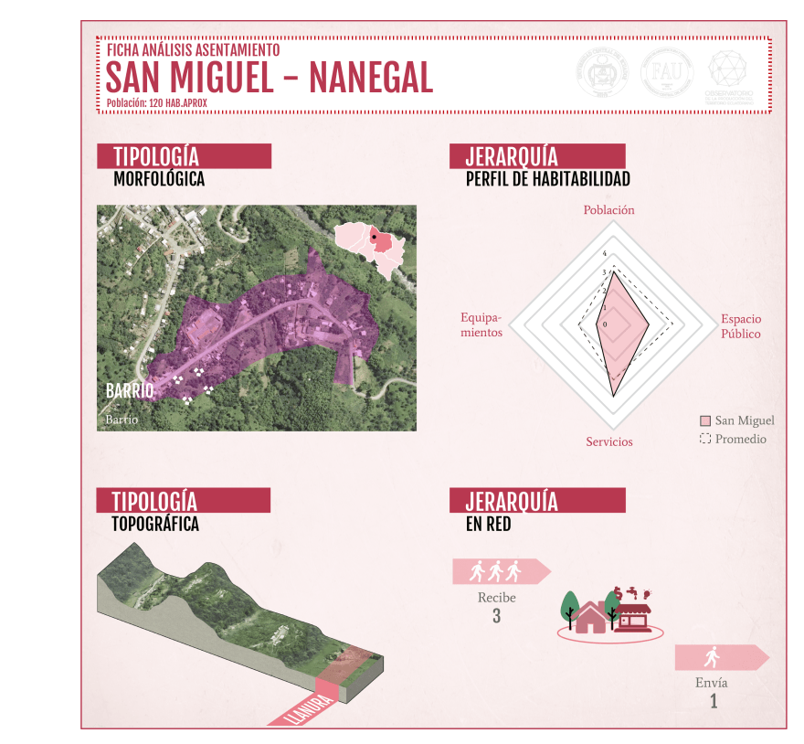 Las fichas de los asentamientos están compuestas por las variables que se estudiaron para la caracterización de los asentamientos poblados de la Mancomunidad del Choco Andino, estas variables son: