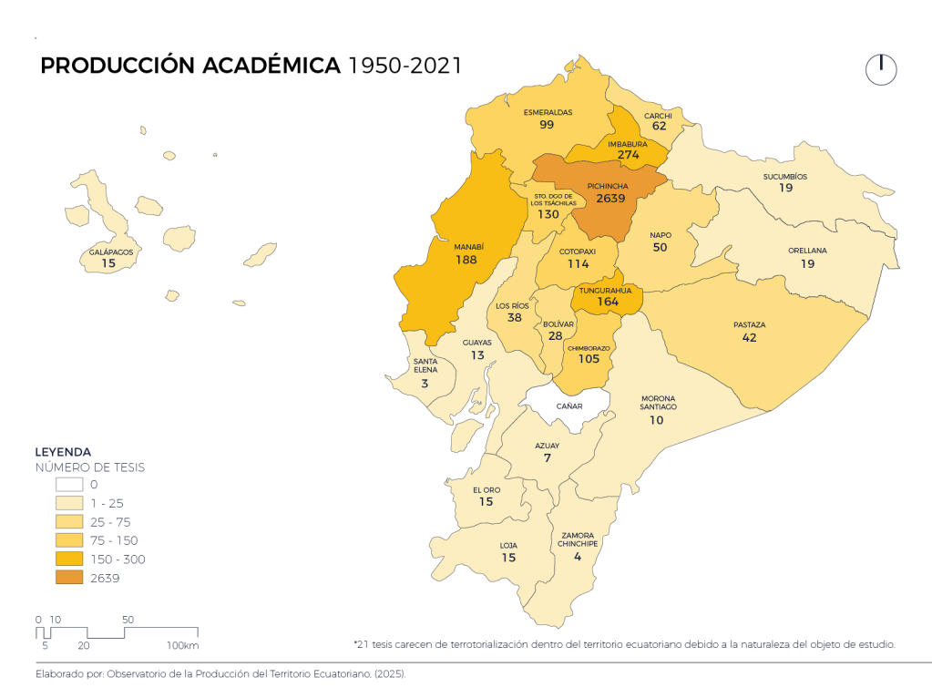 Las tesis de pregrado de la Facultad de Arquitectura y Urbanismo de la Universidad Central del Ecuador (FAU-UCE) reflejan un enfoque amplio sobre la territorialidad. Aunque predominan los estudios en contextos urbanos, incluyen investigaciones significativas sobre dinámicas rurales y periurbanas, destacando su relevancia en el desarrollo arquitectónico y urbanístico. Con una cobertura que abarca casi todo el territorio ecuatoriano, las tesis demuestran el compromiso académico de la FAU-UCE con las diversas realidades socioespaciales, contribuyendo al entendimiento integral del Ecuador como un territorio complejo y multifacético.